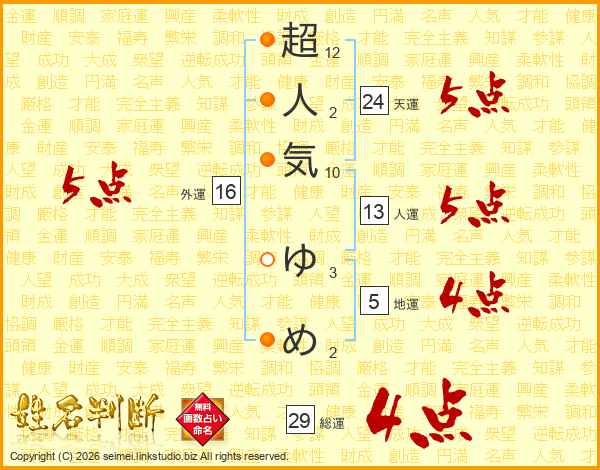 超人気ゆめさんの総運は29画の4点!