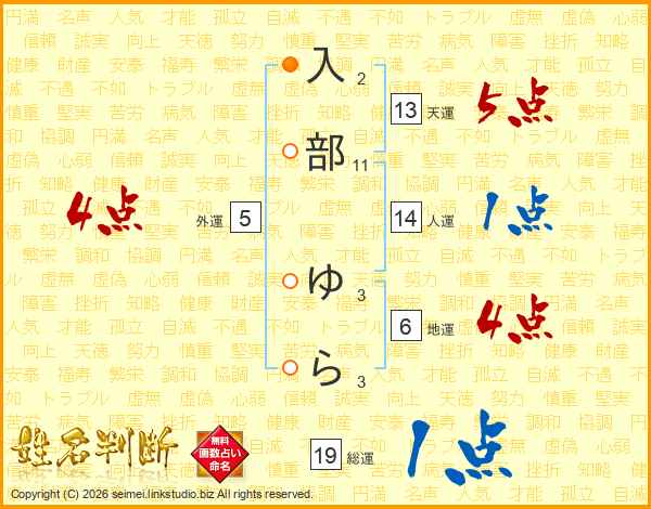 入部ゆらさんの天運は13画の5点!