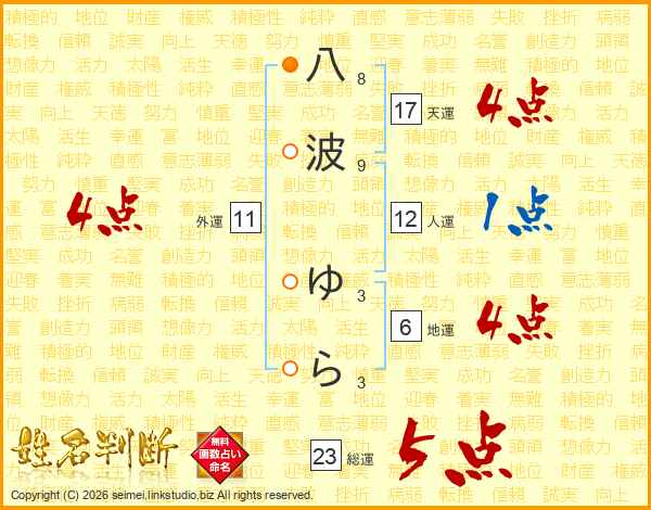 八波ゆらさんの総運は23画の5点!