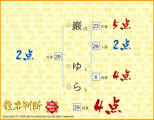 巌ゆらさんの総運は29画の4点!