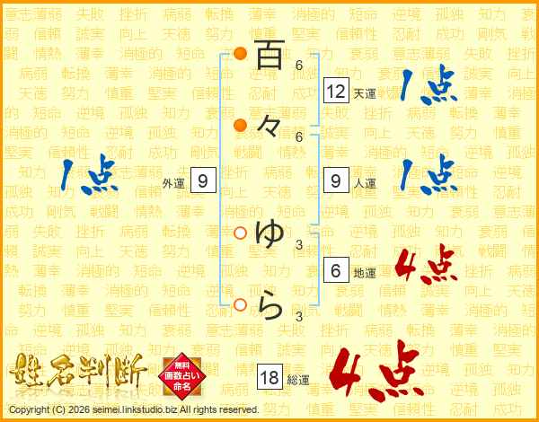 百(6画)々(6画) ゆ(3画)ら(3画)