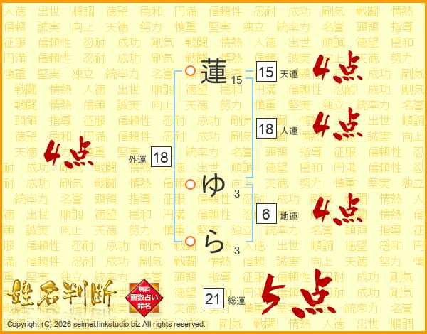 蓮ゆらさんの総運は21画の5点!