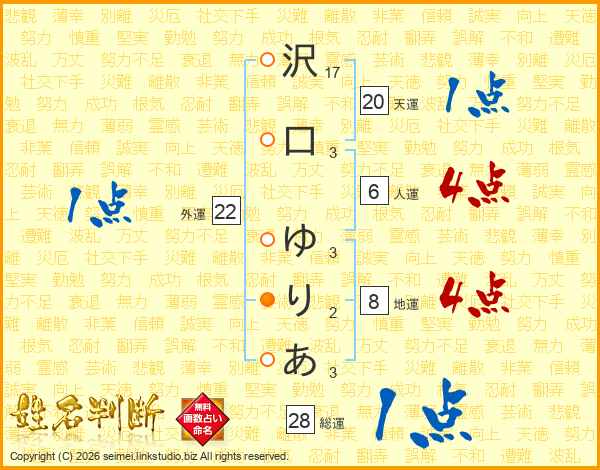 沢口ゆりあさんの総運は28画の1点!