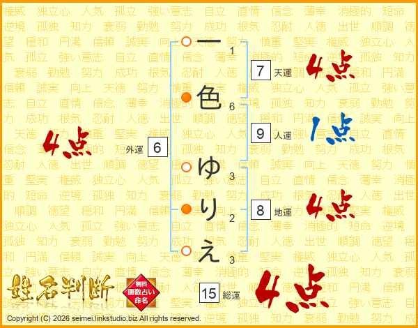 一(1画)色(6画) ゆ(3画)り(2画)え(3画)
