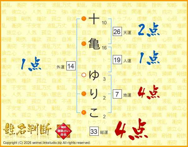 十亀ゆりこさんの総運は33画の4点!