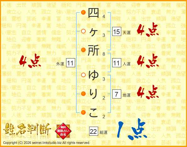 四(4画)ヶ(3画)所(8画) ゆ(3画)り(2画)こ(2画)
