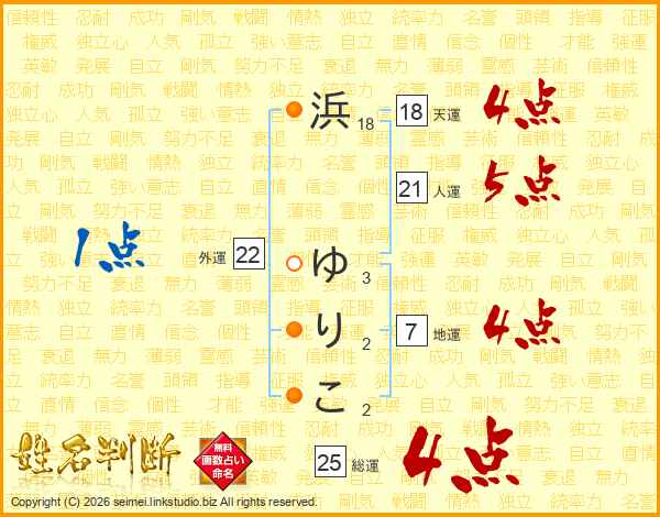 浜(18画) ゆ(3画)り(2画)こ(2画)