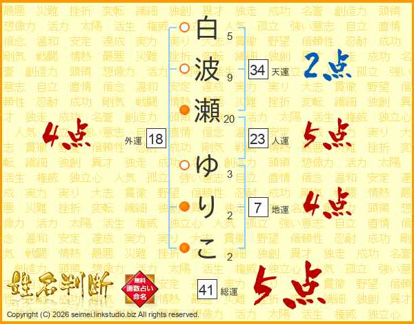 白波瀬ゆりこさんの総運は41画の5点!
