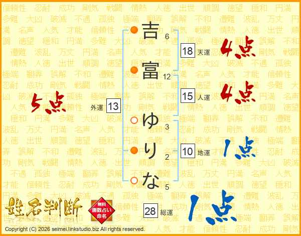 吉富ゆりなさんの総運は28画の1点!