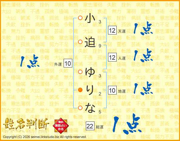 小迫ゆりなさんの総運は22画の1点!