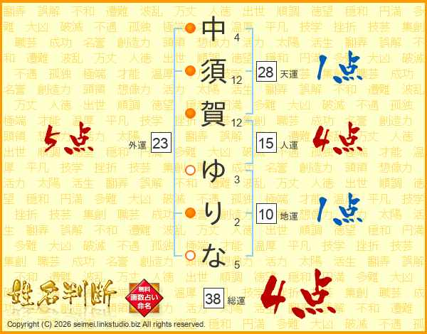 中須賀ゆりなさんの総運は38画の4点!