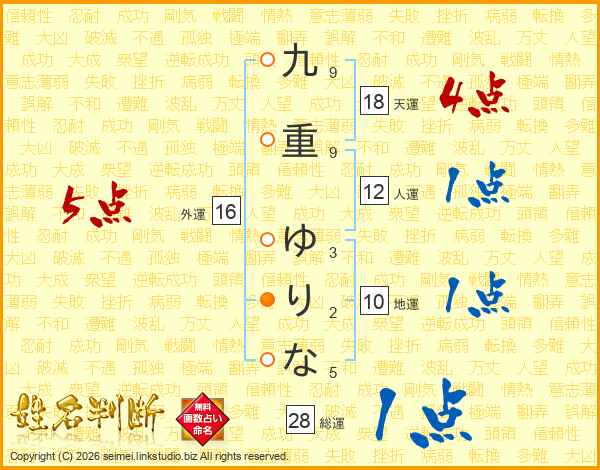 九重ゆりなさんの総運は28画の1点!