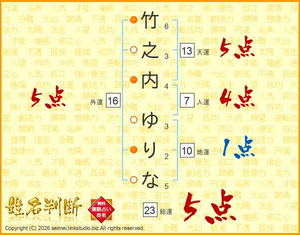 竹之内ゆりなさんの総運は23画の5点!