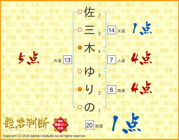 佐三木ゆりのさんの外運は13画の5点!