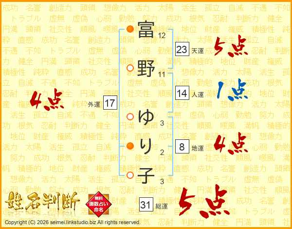 富野ゆり子さんの総運は31画の5点!