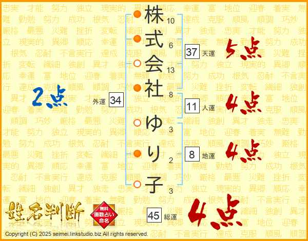 株(10画)式(6画)会(13画)社(8画) ゆ(3画)り(2画)子(3画)