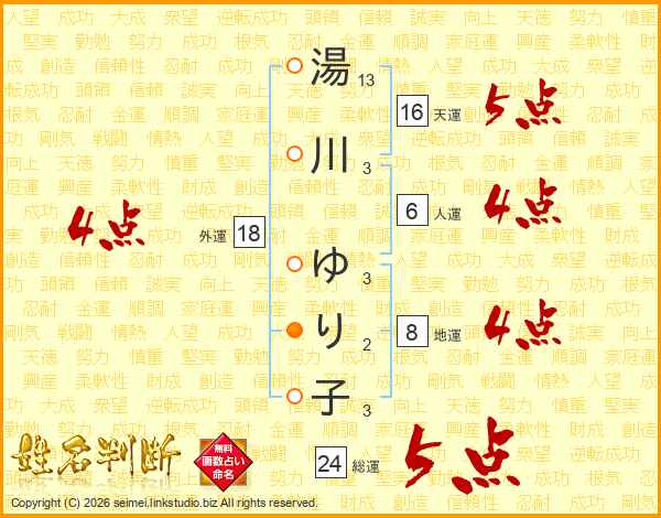 湯川ゆり子さんの外運は18画の4点!