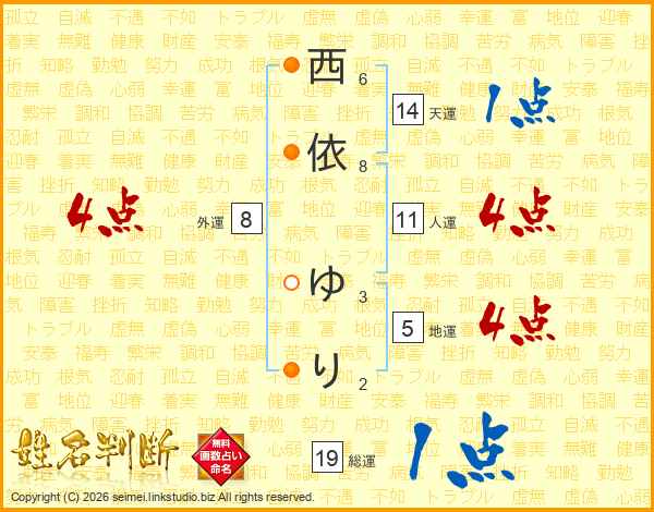 西依ゆりさんの総運は19画の1点!