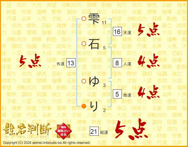 雫石ゆりさんの総運は21画の5点!