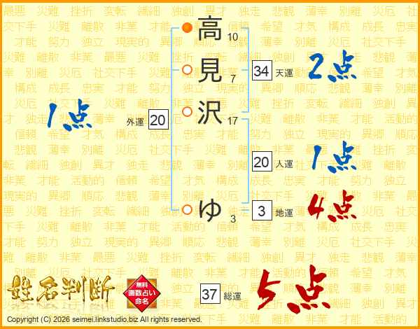 高(10画)見(7画)沢(17画) ゆ(3画)