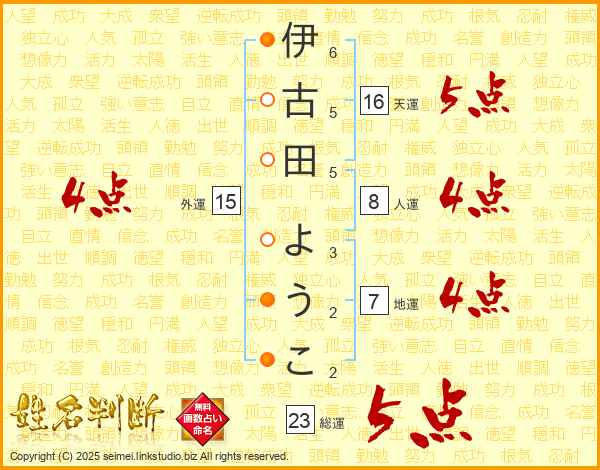 伊古田ようこさんの外運は15画の4点!