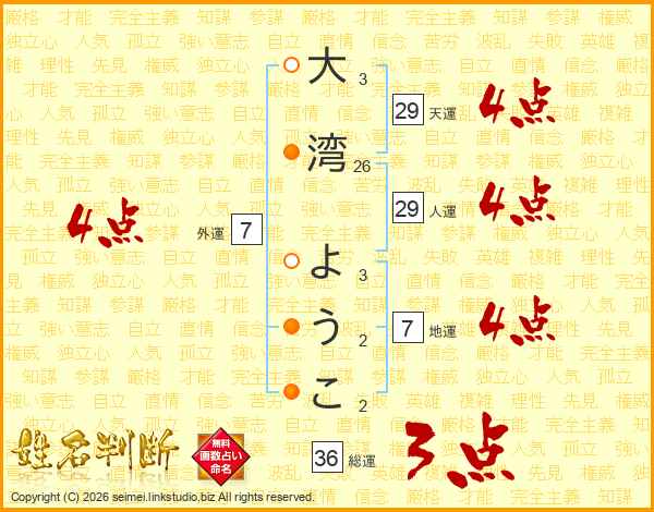 大湾ようこさんの天運は29画の4点!