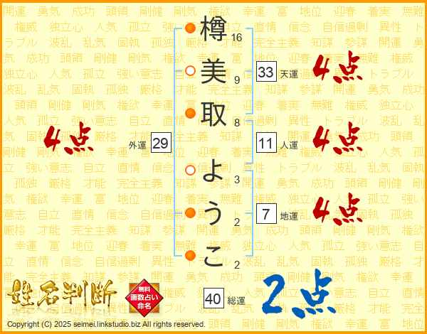 樽美取ようこさんの総運は40画の2点!