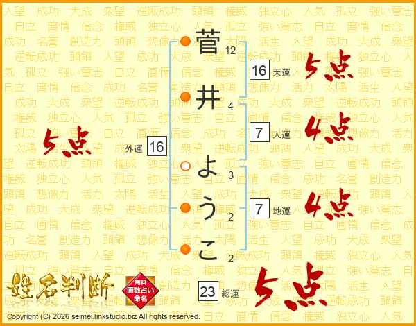 菅井ようこさんの総運は23画の5点!