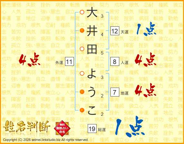 大井田ようこさんの地運は7画の4点!