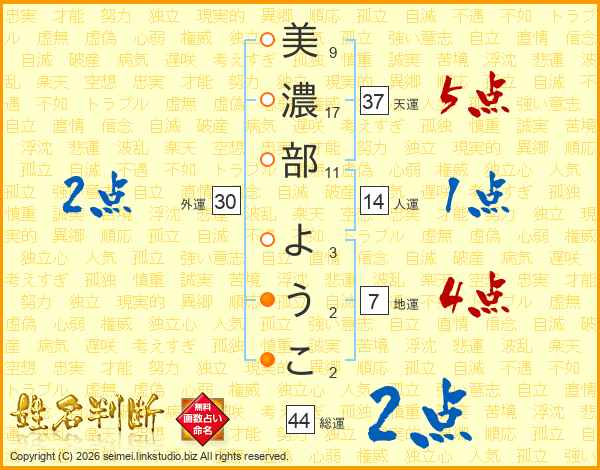 美(9画)濃(17画)部(11画) よ(3画)う(2画)こ(2画)