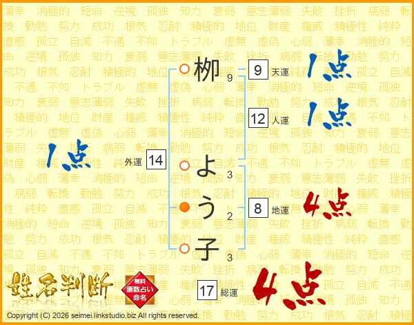 栁よう子さんの総運は17画の4点!