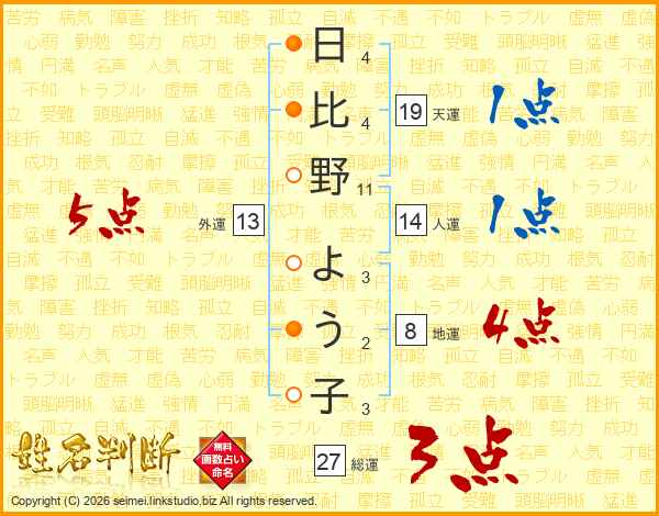 日比野よう子さんの総運は27画の3点!