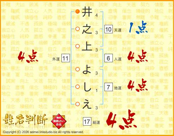 井(4画)之(3画)上(3画) よ(3画)し(1画)え(3画)