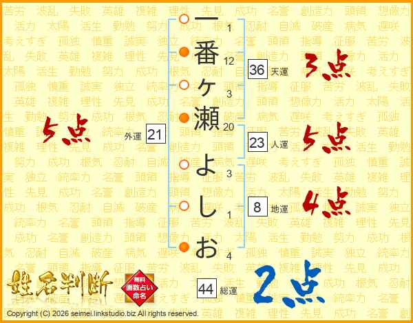 一番ヶ瀬よしおさんの総運は44画の2点!