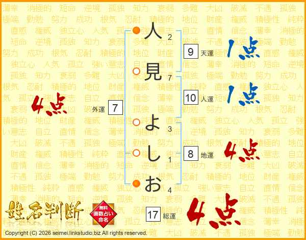 人見よしおさんの総運は17画の4点!