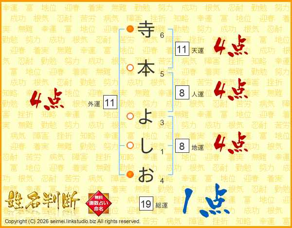 寺(6画)本(5画) よ(3画)し(1画)お(4画)