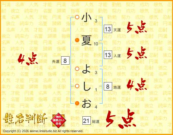 小(3画)夏(10画) よ(3画)し(1画)お(4画)