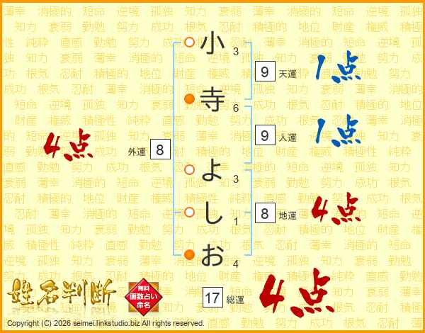 小寺よしおさんの総運は17画の4点!