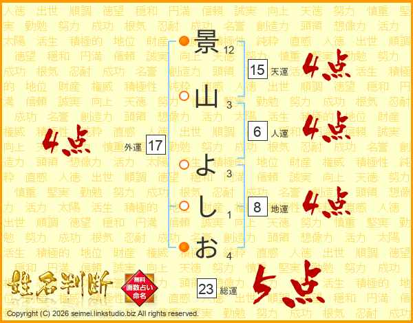 景(12画)山(3画) よ(3画)し(1画)お(4画)