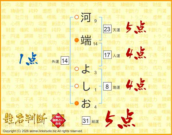 河端よしおさんの総運は31画の5点!