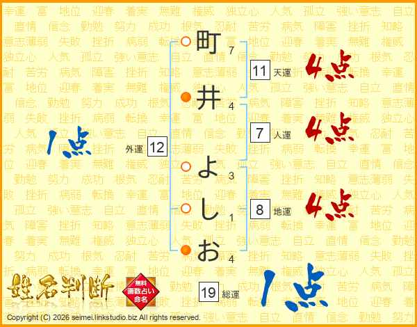 町(7画)井(4画) よ(3画)し(1画)お(4画)