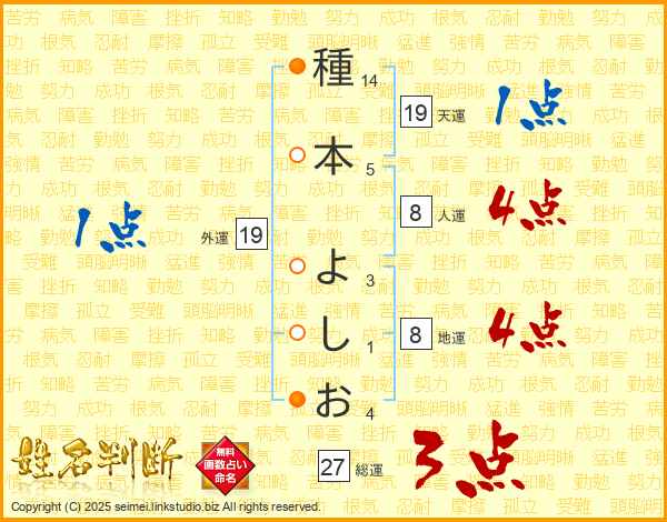 種本よしおさんの総運は27画の3点!