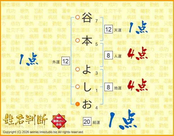 谷本よしおさんの天運は12画の1点!
