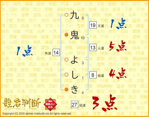 九鬼よしきさんの総運は27画の3点!