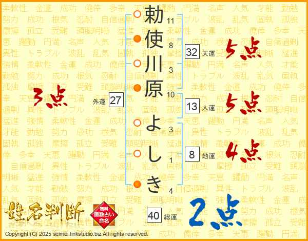 勅使川原よしきさんの総運は40画の2点!