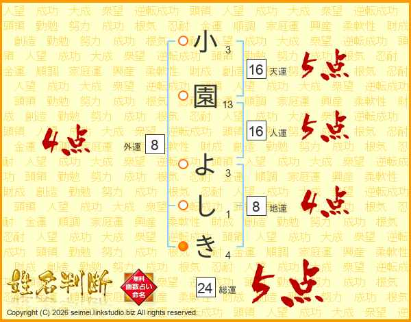小園よしきさんの総運は24画の5点!