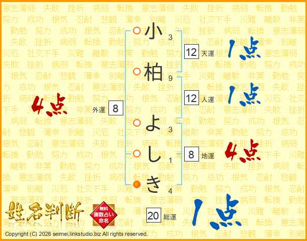 小柏よしきさんの総運は20画の1点!