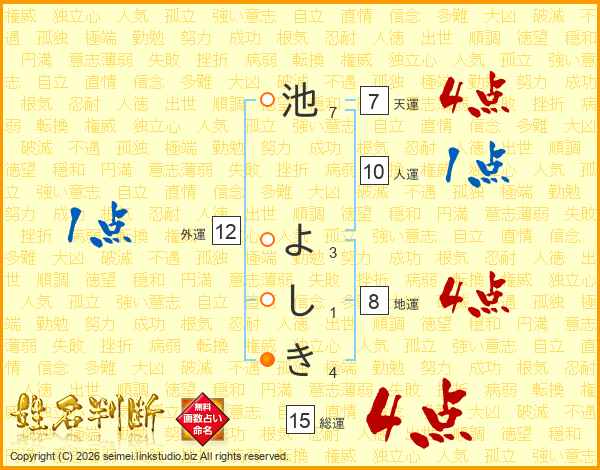 池よしきさんの総運は15画の4点!