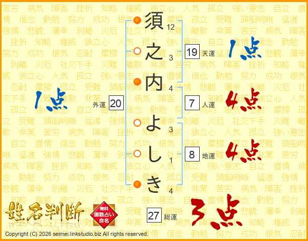 須之内よしきさんの総運は27画の3点!