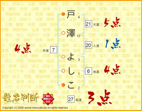 戸澤よしこさんの総運は27画の3点!